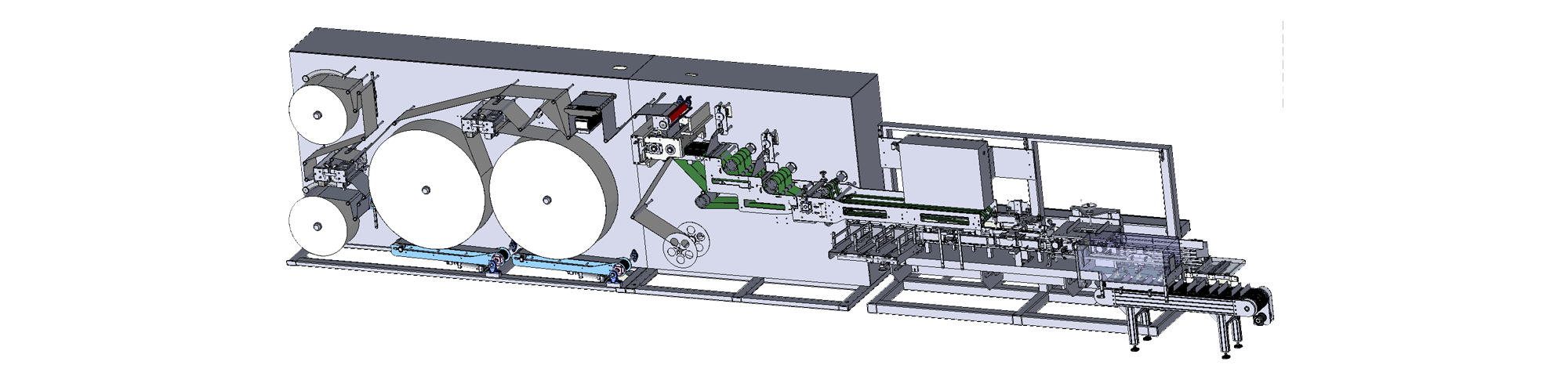 全自動(dòng)面膜生產(chǎn)線,實(shí)現(xiàn)了產(chǎn)品從無紡布放卷、模切成型、折疊裝袋、自動(dòng)定量灌液、自動(dòng)封口到成品輸出的自動(dòng)化生產(chǎn),具有速度快穩(wěn)定性高,衛(wèi)生級品質(zhì)保障等優(yōu)點(diǎn)。該生產(chǎn)線采用了多軸伺服控制系統(tǒng)和觸摸式人機(jī)界面,可在觸摸屏上輕松設(shè)定參數(shù)。機(jī)器與物料接觸部分均采用優(yōu)質(zhì)不銹鋼材質(zhì),衛(wèi)生級設(shè)計(jì)保證產(chǎn)品生產(chǎn)安全衛(wèi)生。
